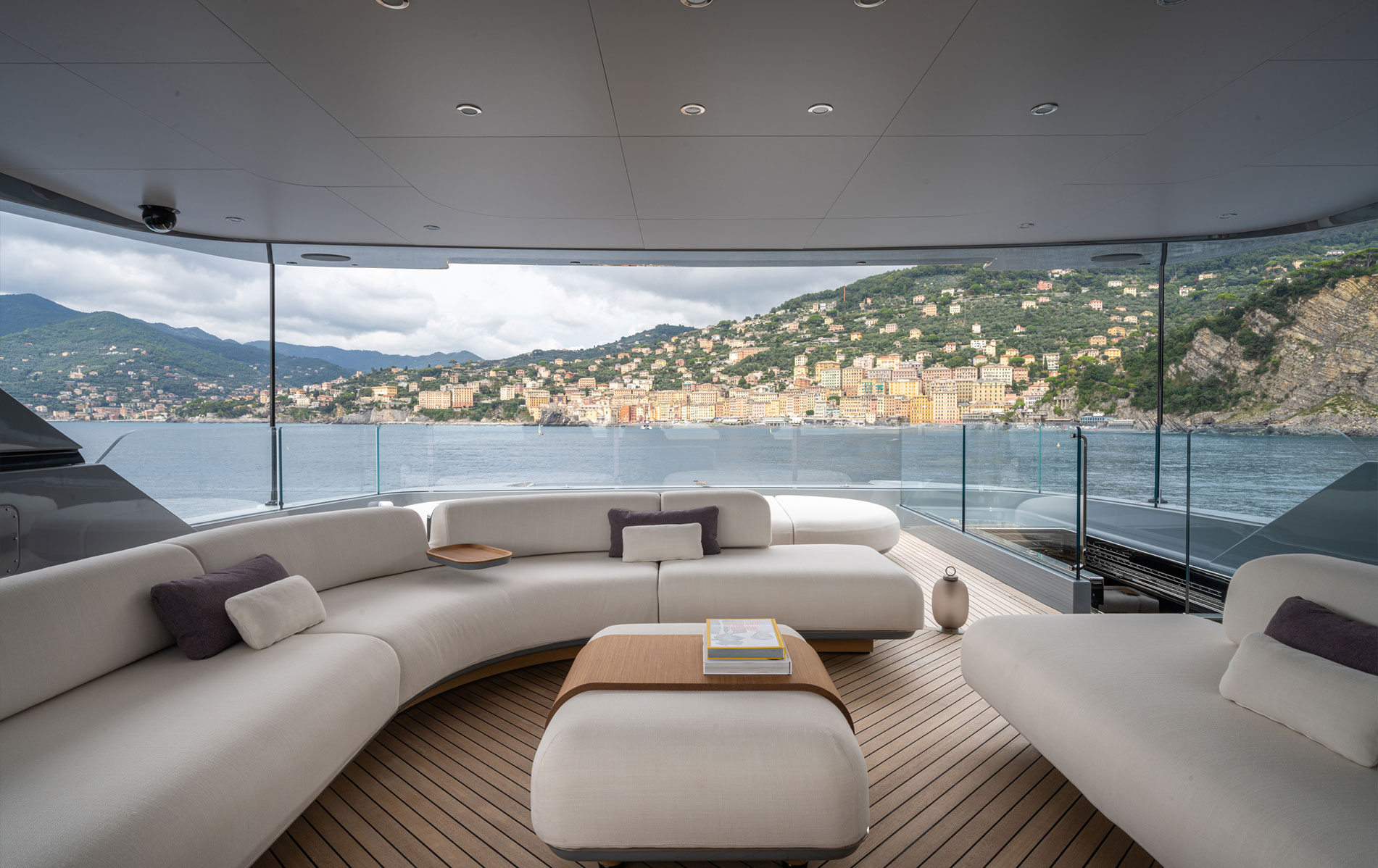 Elevating the onboard experience, RJ features large, uninterrupted single-pane windows that offer sweeping panoramic views and flood the interiors with natural light. This architectural decision enhances the perception of space and invites a seamless relationship between interior and exterior, adding to the feeling of contemporary, effortless luxury.